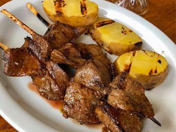 Grilled beef tenderloin skewers. Served with golden potatoes