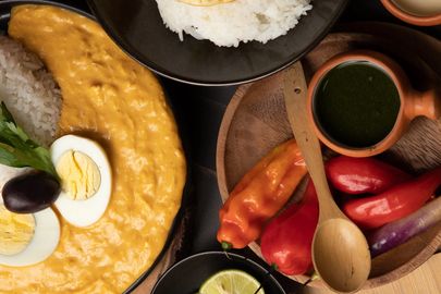 Filled with chicken and served with salsa criolla.
