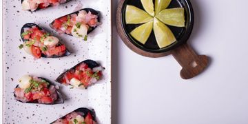Tilapia cured in lime juice. Served with potato, corn, and sweet potato.